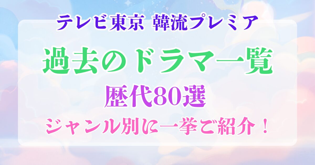 テレビ東京「韓流プレミア」でこれまで放送されたドラマ全80作をご紹介します。 朝の韓国ドラマとして人気の高い「韓流プレミア」。これまで時代劇も現代劇が合計94回放送されてきました。全94回の中では繰り返し放送された作品もあります。 トンイの次回... -