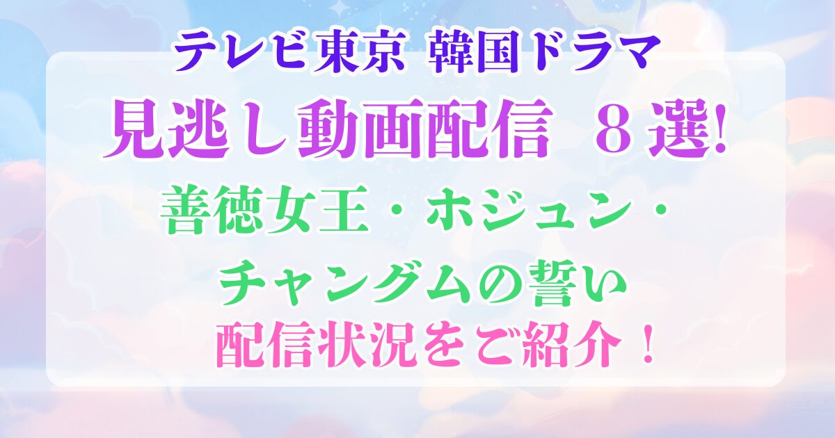 【テレビ東京】韓国ドラマの見逃し動画配信8選!善徳女王やホジュンの配信状況をご紹介