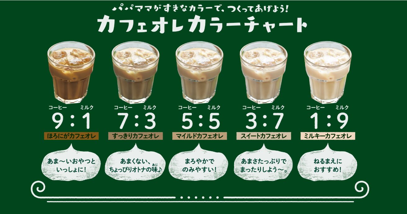 | ほろにがカフェオレ | 9:1 | 甘いおやつと一緒に! |