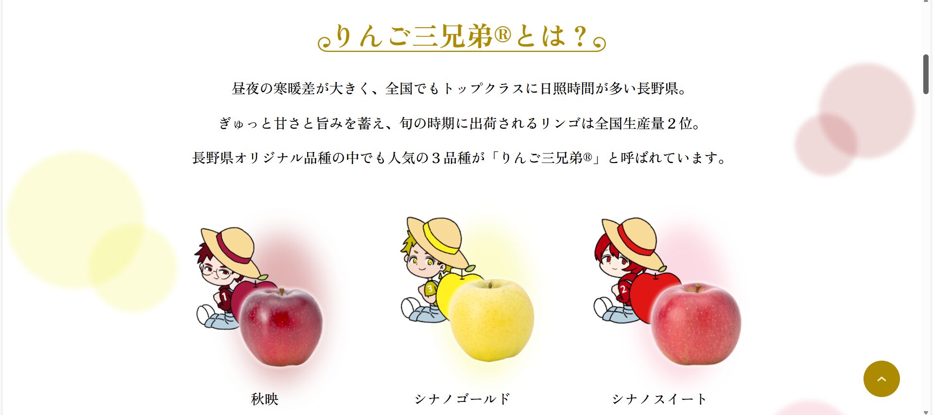信州りんご三兄弟について、名前や特徴をご紹介しました。
