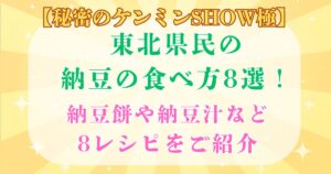 東北県民の納豆の食べ方8選!納豆餅・納豆汁のレシピをご紹介【秘密のケンミンSHOW極】 2026年1月8日放送「秘密のケンミンSHOW極」で話題の東北県民の納豆の食べ方をご紹介します。 東北では、からめやすいひきわり納豆を使うのが主流です。 本文では東北県…